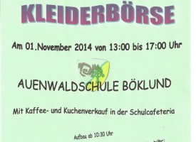 Am Samstag, d. 01.11 2014 veranstaltet der FARBe.V. zugunsten der Schulhofgestaltung von 13:00 bis 17:00 Uhr einen Floh- und Kleidermarkt in der Auenwaldschule . Außerdem wird in der Schulcafeteria Kaffee und Kuchen angeboten. Die Standgebühr für einen Stand bis drei Meter beträgt fünf Euro und eine Kuchenspende (bitte keine Sahnetorten), Anmeldungen und nähere Informationen bei […]